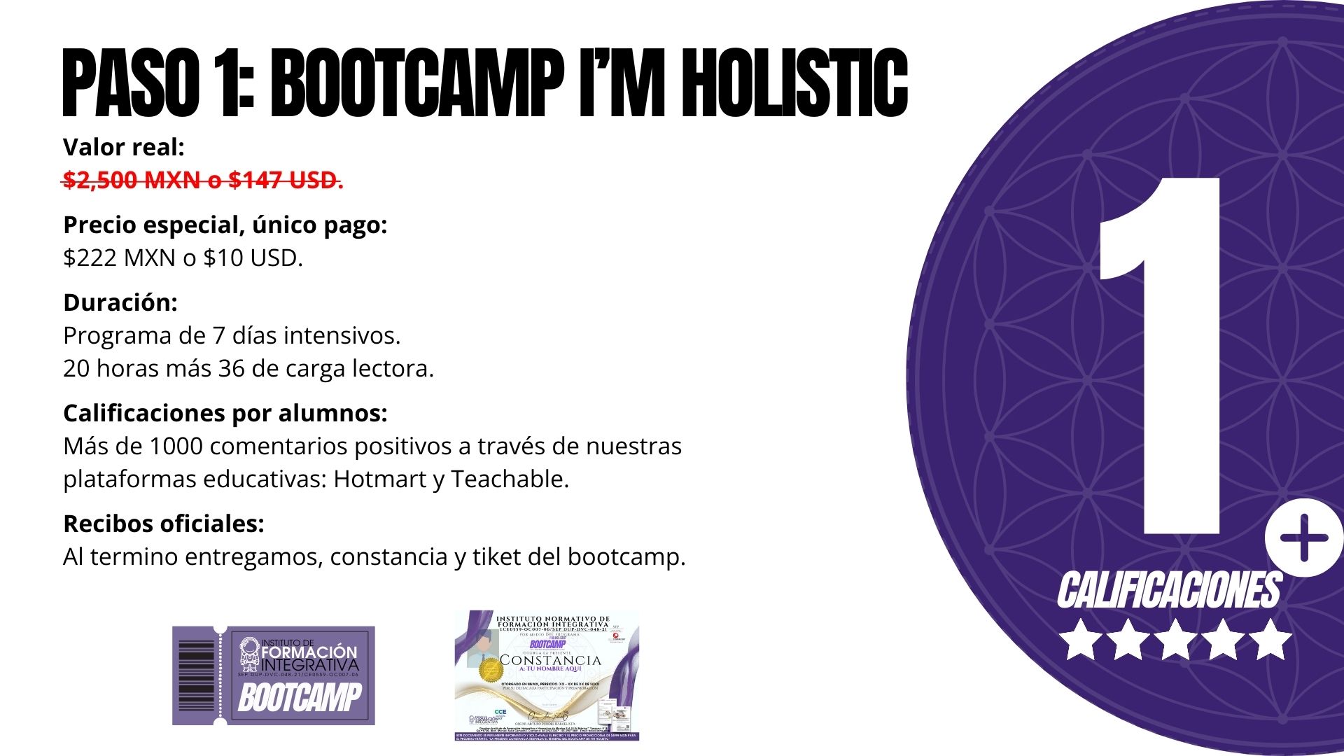 Ya sea que estés en el Bootcamp de I’m Holistic o en el programa completo, son programas diseñados para ti. Te aseguro que con la aplicación de solo uno de los cientos de aprendizajes que recibirás, habrás multiplicado su valor mínimo 10 veces.